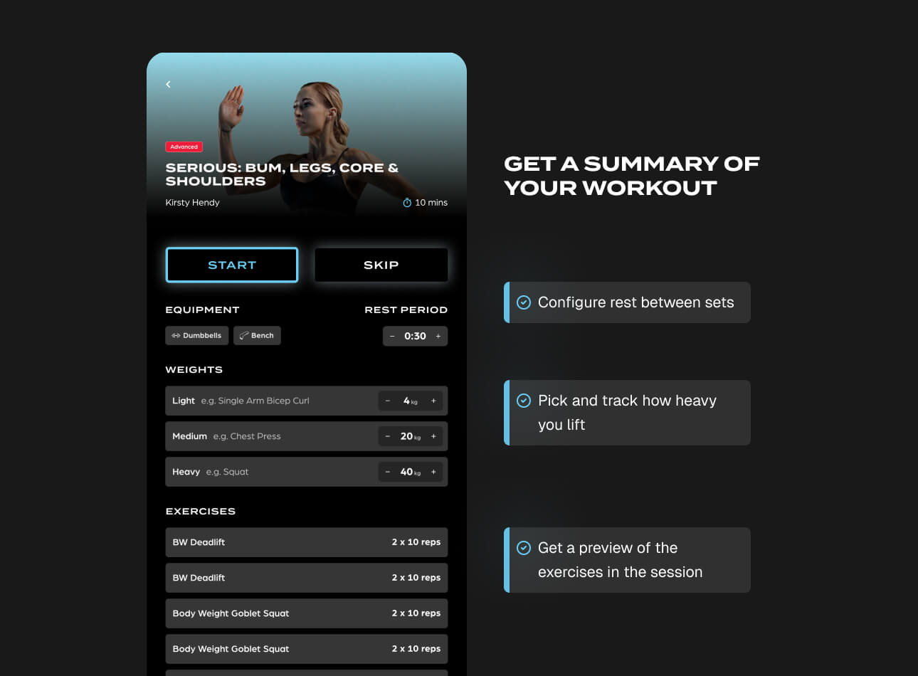 The pre-workout screen became crucial for building confidence. Users need to know what they're signing up for and get in the right mindset.