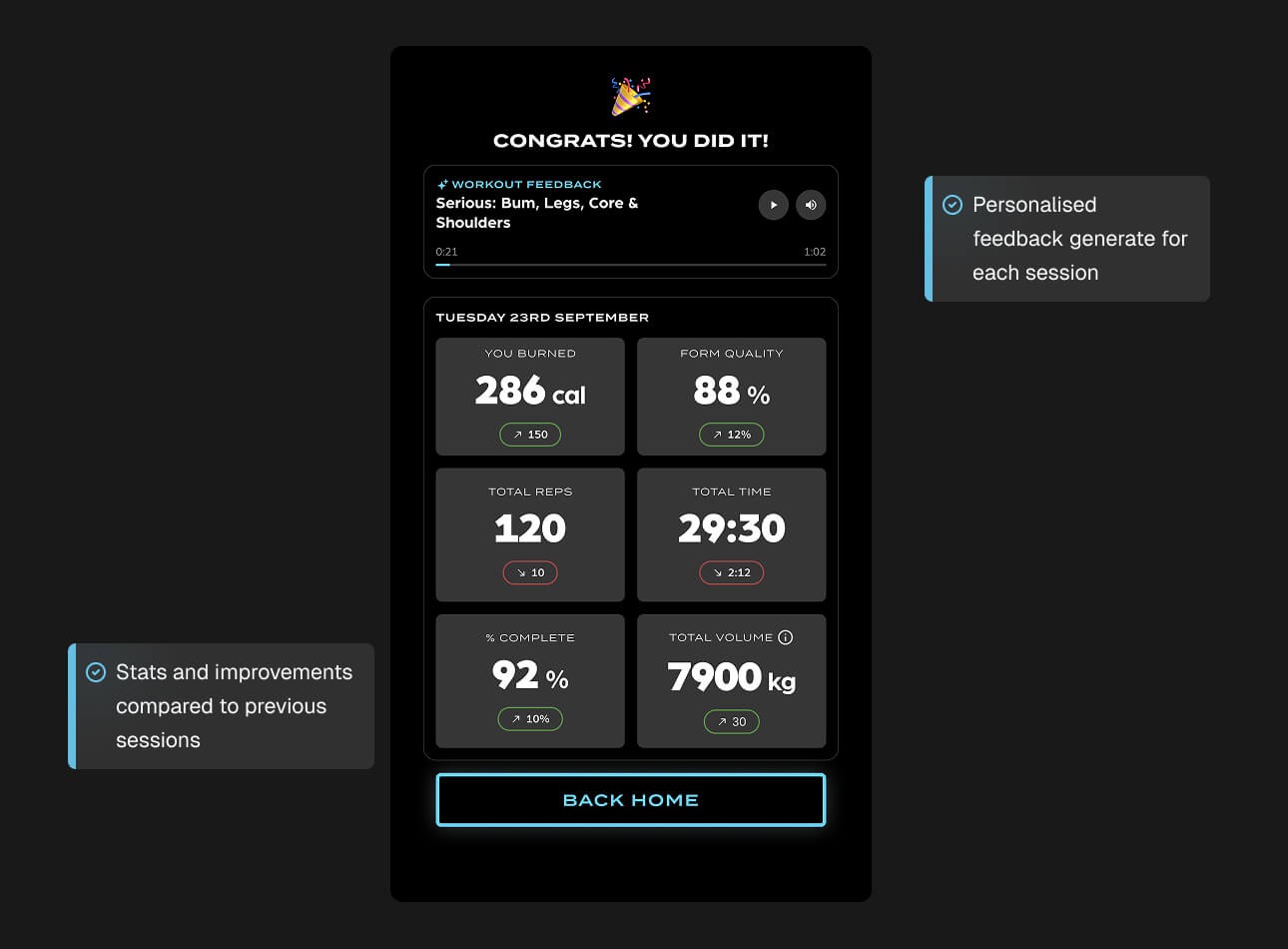 Most importantly: The interface made advanced form tracking technology feel human and encouraging, not robotic and judgmental.